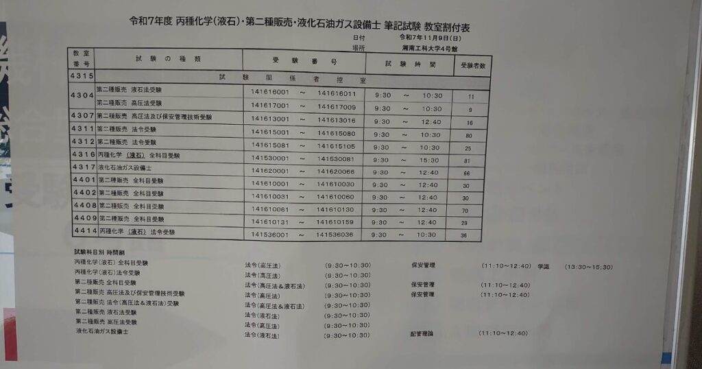 私は丙種化学の受験でしたが、試験会場には高圧ガスのその他の試験で受験される方がいっぱい来ていました。