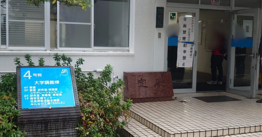 4号館に入ると入口に教室案内があるので、そこで自分の教室を確認します。